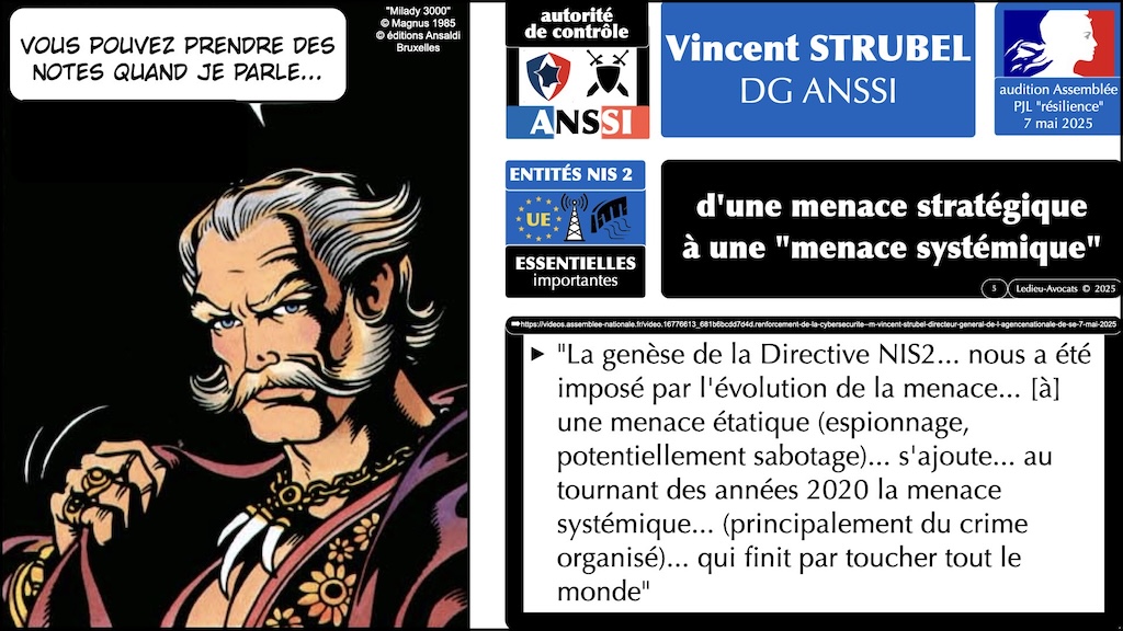 ![#628 ANSSI audition Sénat et Assemblée de M. Vincent STRUBEL DG ANSSI sur le projet de loi Résilience [transposition Directive NIS2] © Ledieu-Avocats 28-06-2025.020](https://ledieu-avocats.fr/wp-content/uploads/2025/06/628-ANSSI-audition-Senat-Assemblee-de-M.-Vincent-STRUBEL-DG-ANSSI-sur-le-projet-de-loi-22Resilience22-transposition-Directive-NIS2-©-Ledieu-Avocats-28-06-2025.020.jpeg)