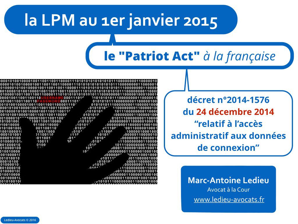 Vous allez dire que j’exagère avec ce titre « Le Patriot Act à la française ». Et pourtant.. Cette LPM du 18 décembre 2013 recélait bien des trésors, en plus du régime nouveau sur les Opérateurs d’Importance Vitale. [mise à jour du 25 juillet 2015 ] La LPM et le décret du 24 décembre 2014 ici commentés […]