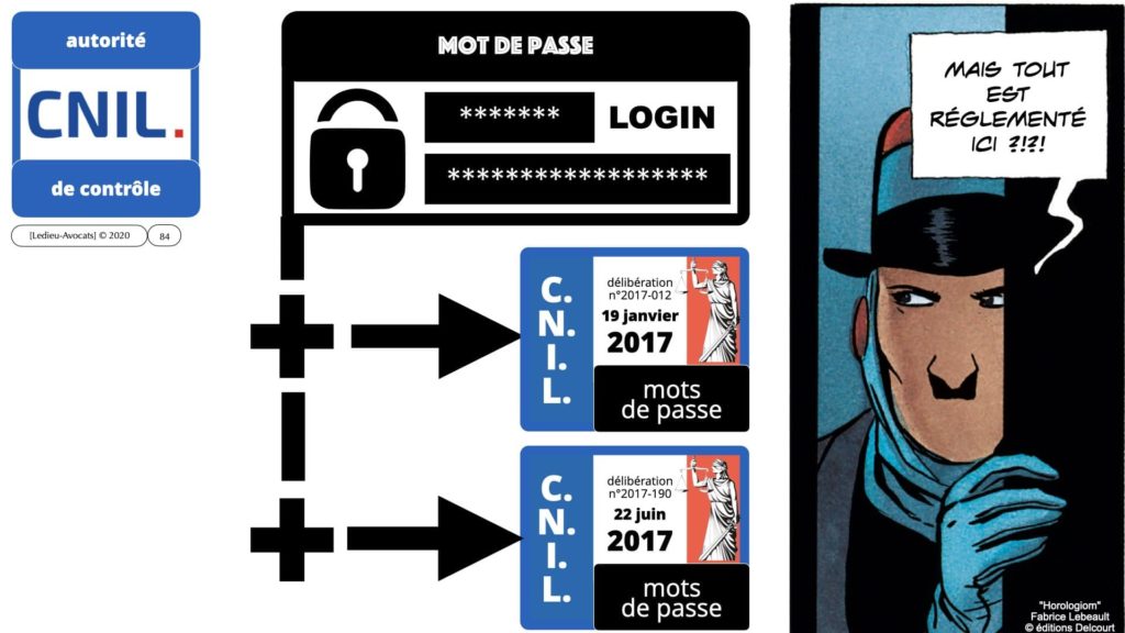 Pour vous simplifier la vie, voilà comment DOIVENT être mis en oeuvre des mots de passe (je cite le point (84) de la délibération CNIL « Société S*** » du 28 juillet 2020) :