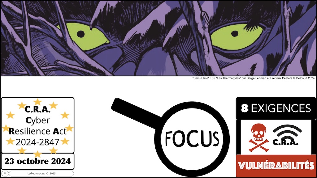 ![#612 CRA 8 mesures vulnérabilités obligatoires pour [PRODUITS avec LOGICIEL connecté] Cyber Resilience Act #07 [18 février 2025] © Ledieu-Avocats.035](https://ledieu-avocats.fr/wp-content/uploads/2025/02/612-CRA-8-mesures-vulnerabilites-obligatoires-pour-PRODUITS-avec-LOGICIEL-connecte-Cyber-Resilience-Act-07-18-fevrier-2025-©-Ledieu-Avocats.035.jpeg)