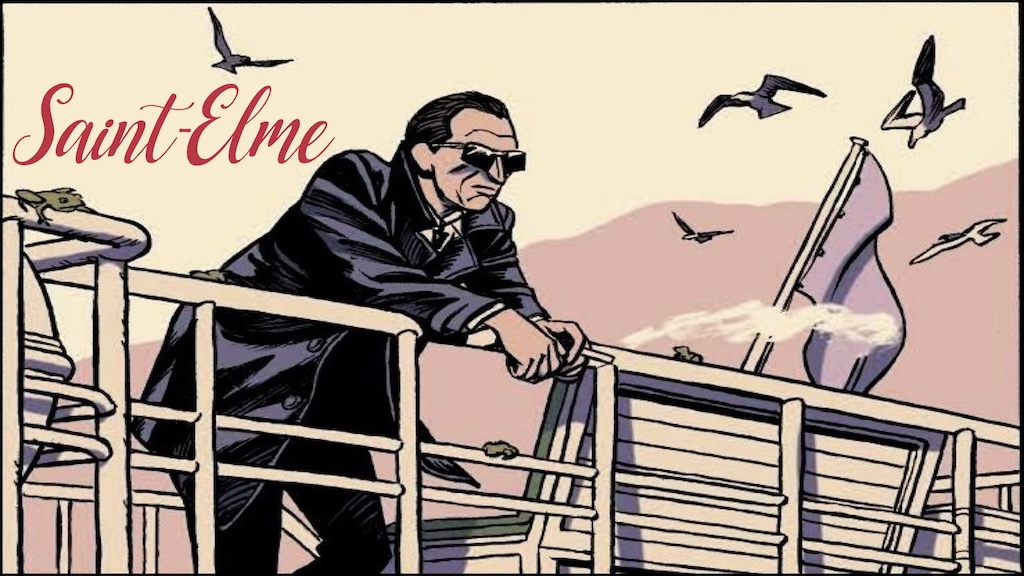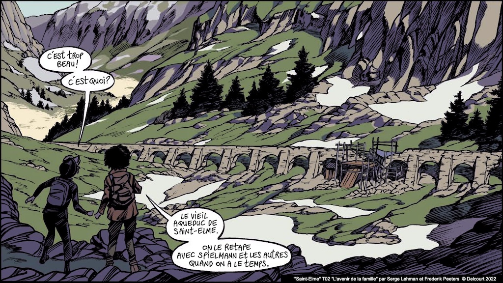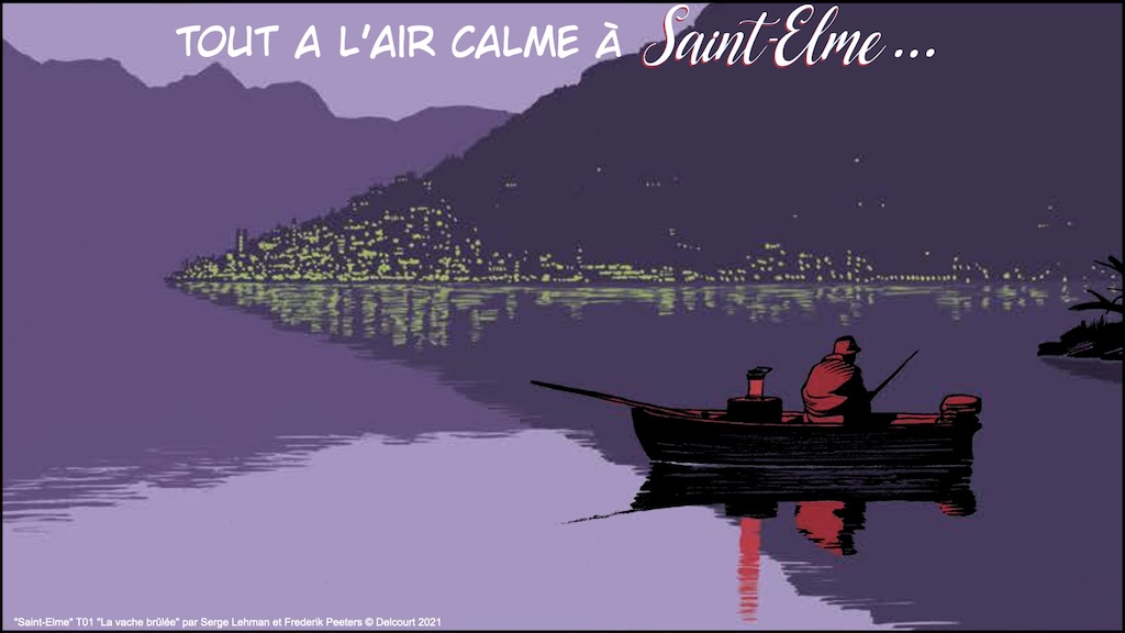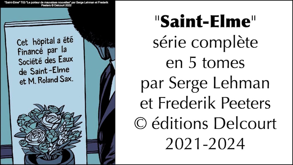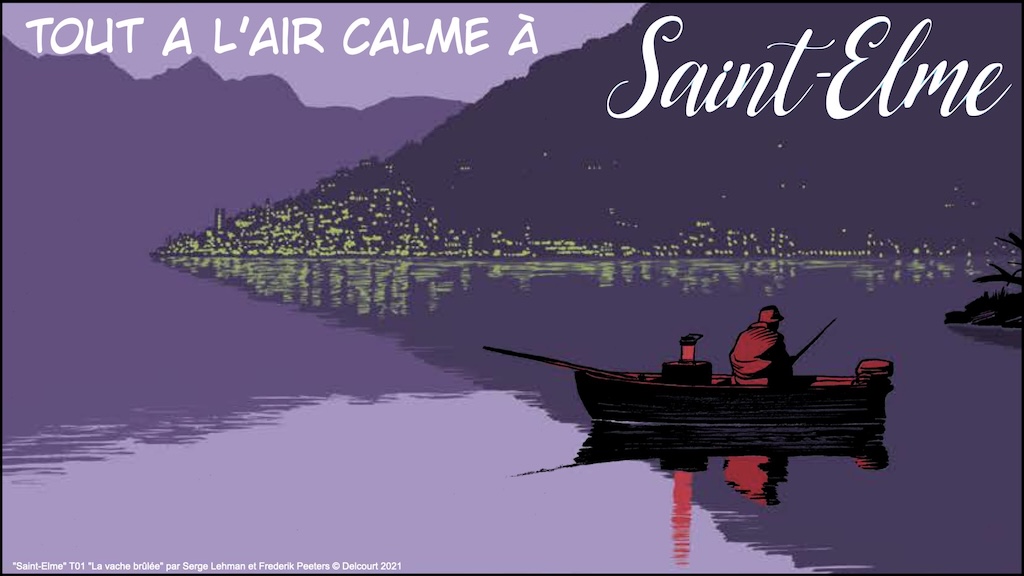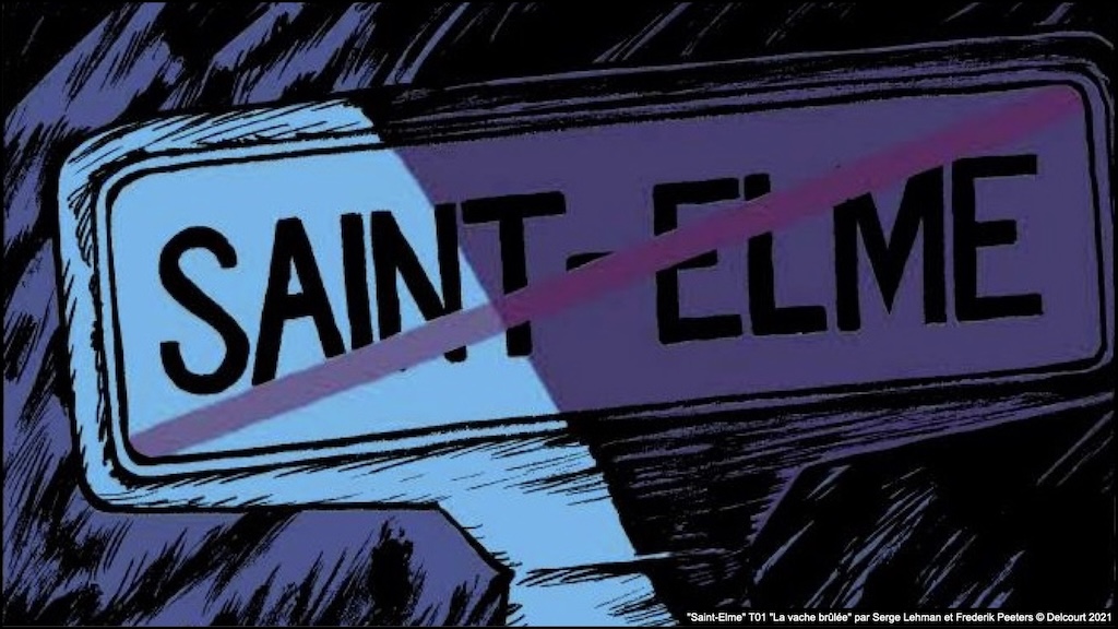 « Saint-Elme » série complète vraiment remarquable en 5 tomes par Serge Lehman (scénario diabolique) et Frederik Peeters (dessin et couleurs géniales) © éditions Delcourt 2021-2024