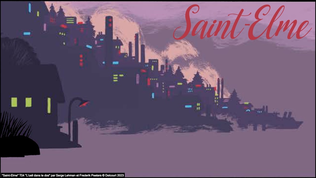 « Saint-Elme » série complète vraiment remarquable en 5 tomes par Serge Lehman (scénario diabolique) et Frederik Peeters (dessin et couleurs géniales) © éditions Delcourt 2021-2024