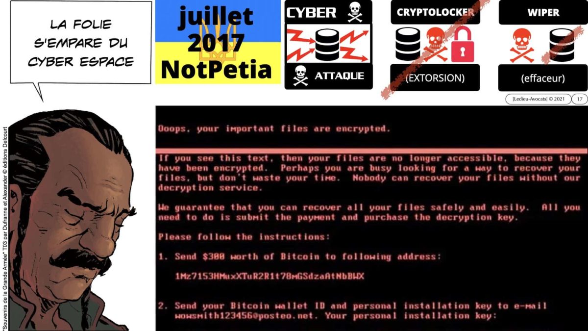 La « surprise » NotPetia : sous couvert d’une attaque de type « ransomware » / cryptolocker (tu paies et je t’envoie les clés de déchiffrement), les attaquants n’étaient pas en mesure de faire la corrélation entre la victime qui paie et la clé de déchiffrement à fournir.