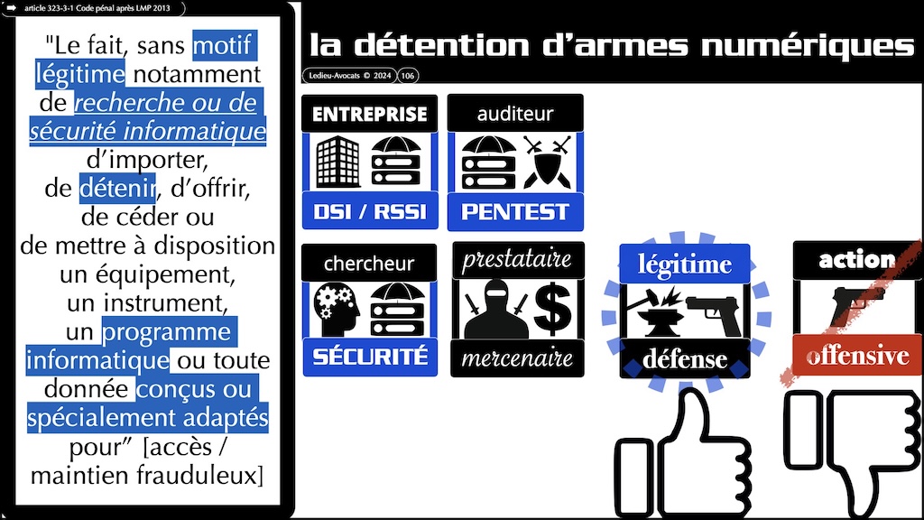 cyber-offensive cyber-défensive ? Qu'est-ce qui est légal en France ? Pour les professionnel(le)s ? pour les bricoleurs z'amateurs ?