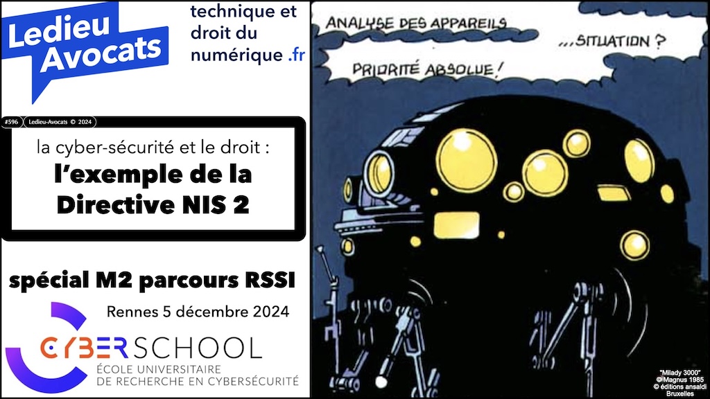Voici l’intégrales des slides servant des support aux 3 heures de cours de ce jeudi matin 5 décembre 2024 à la Cyberschool M2 parcours RSSI Rennes.