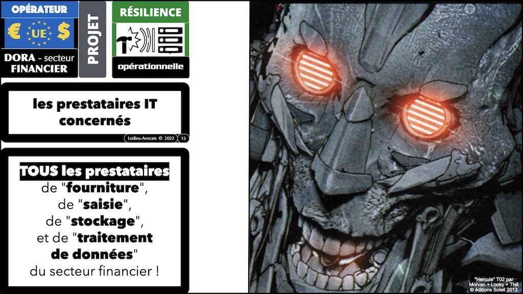 Un second pas sera franchi dès l’adoption des règles de résilience technique imposées par DORA aux « 22.000 entités financières » de l’UE et à TOUS leurs prestataires de « fourniture » , de « saisie » , de « stockage » , et de « traitement » de données.