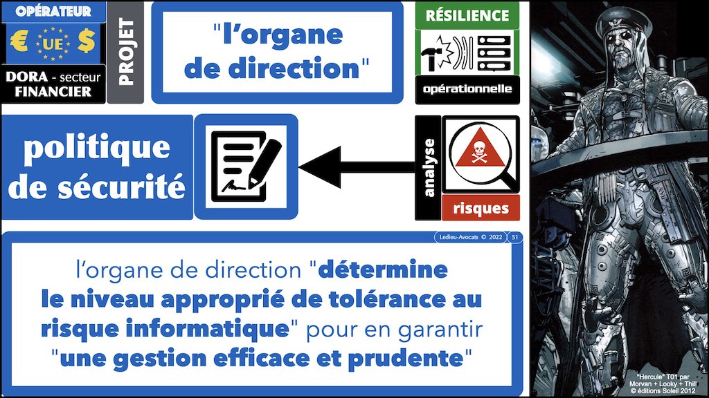 DORA impose que la liste des risques identifiés et gérés (c’est à dire traités) soit du ressort de « l’organe de direction » … On s’en serait douté…