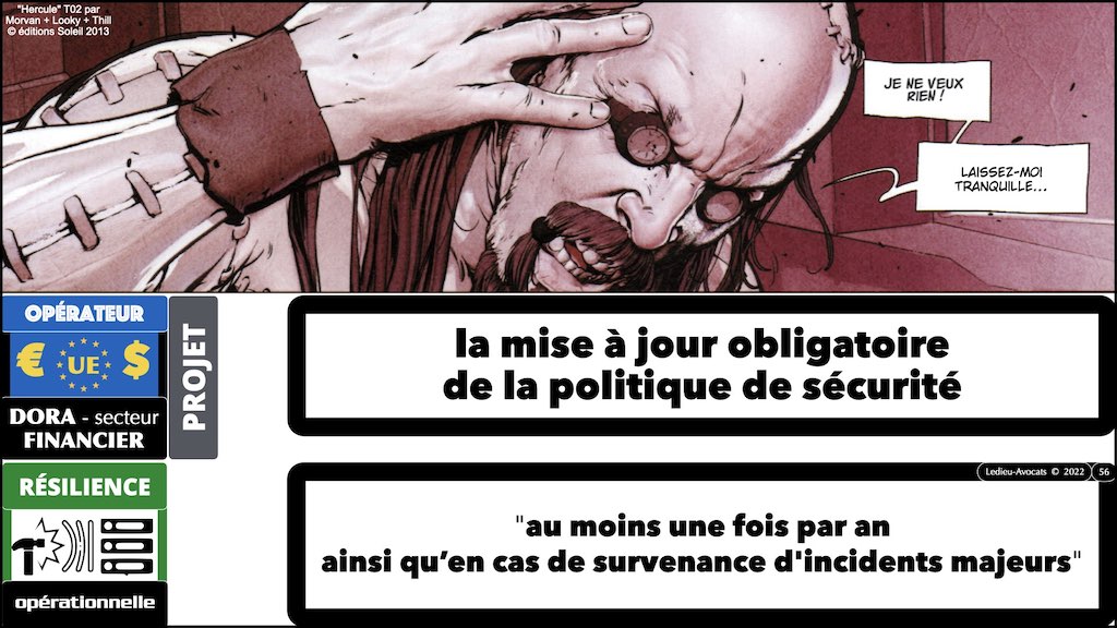 Aujourd’hui, quatrième travail d’Hercule de notre saga consacrée au projet de Règlement UE DORA version 24 septembre 2020 rectifié 23 juin 2022 : « Ramener (vivant) le sanglier d’Érymanthe » (pensez à le réviser, celui-là, c’est pas le plus connu des 12 travaux).