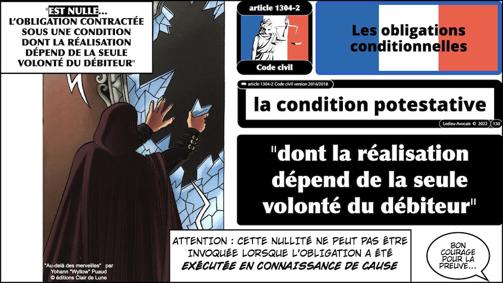 La difficulté pour les rédactrices/rédacteurs de ce type de clauses sera d’en éviter le caractère potestatif, qui les rendraient nulles d’ordre public en droit français.
