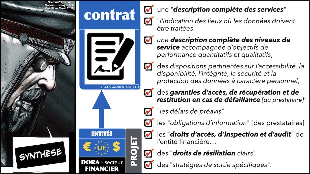 Pas besoin de décrire ce qui est prévu dans DORA au titre du contenu obligatoire des contrats à conclure, une citation suffit :