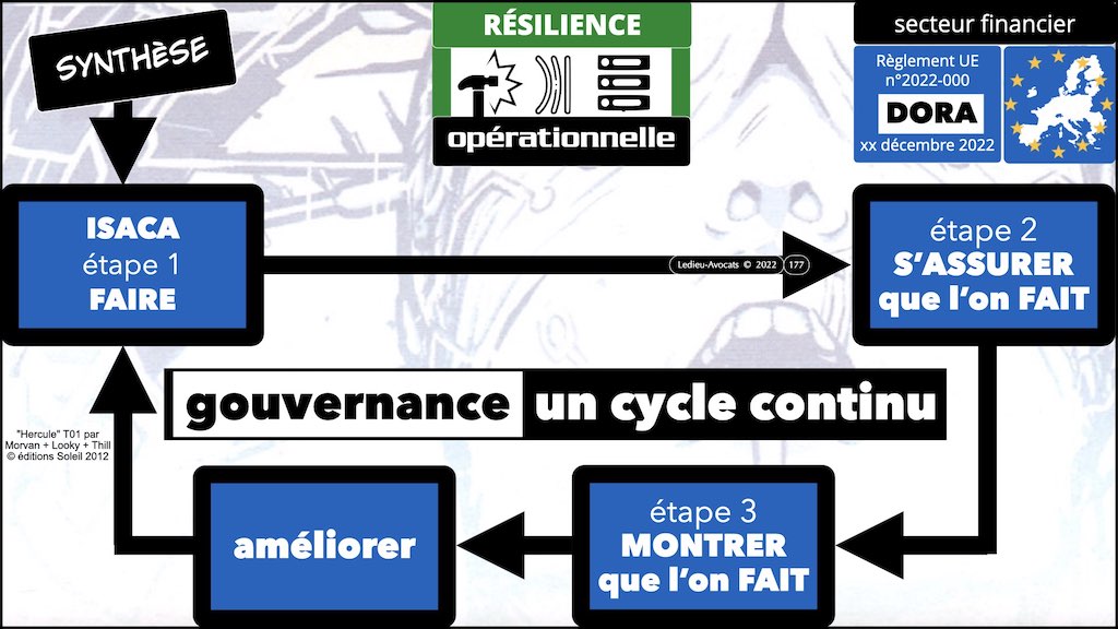 Les 12 travaux d’Hercule qui vont être imposés aux « 22.000 entités financières » de l’UE et à tous leurs prestataires IT (pardon d’insister sur ce point) vous sont présentés depuis le début dans un ordre logique. Si vous voulez une vue d’ensemble des taches qui vont nous occuper :