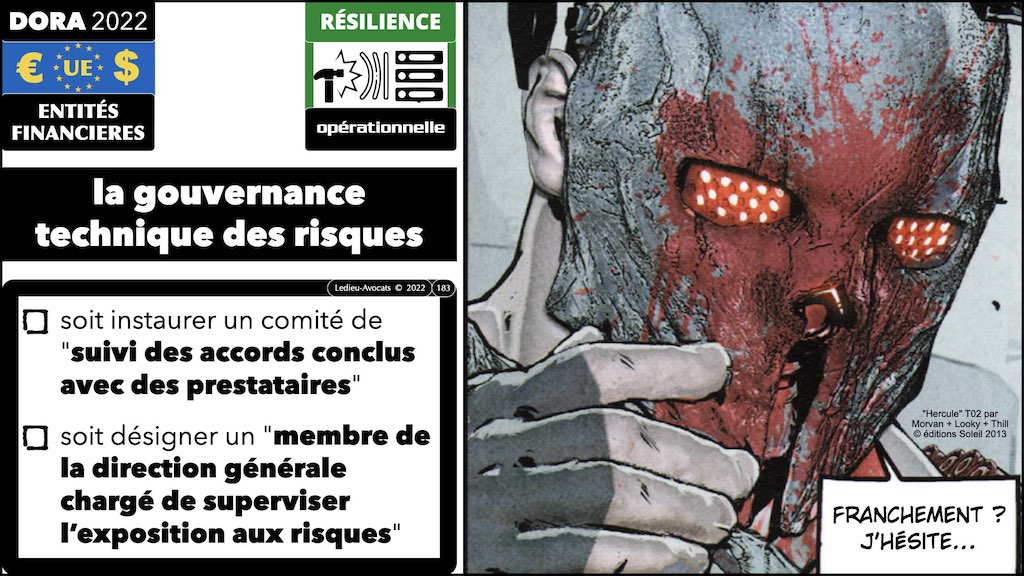 Retenons surtout que les RSSI voient (enfin) leur mission consacrée au plus haut niveau de la hiérarchie de leur entreprise car DORA prévoit l’obligation soit d’instaurer un comité de « suivi des accords conclus avec des prestataires« , soit de désigner un « membre de la direction générale chargé de superviser l’exposition aux risques » .