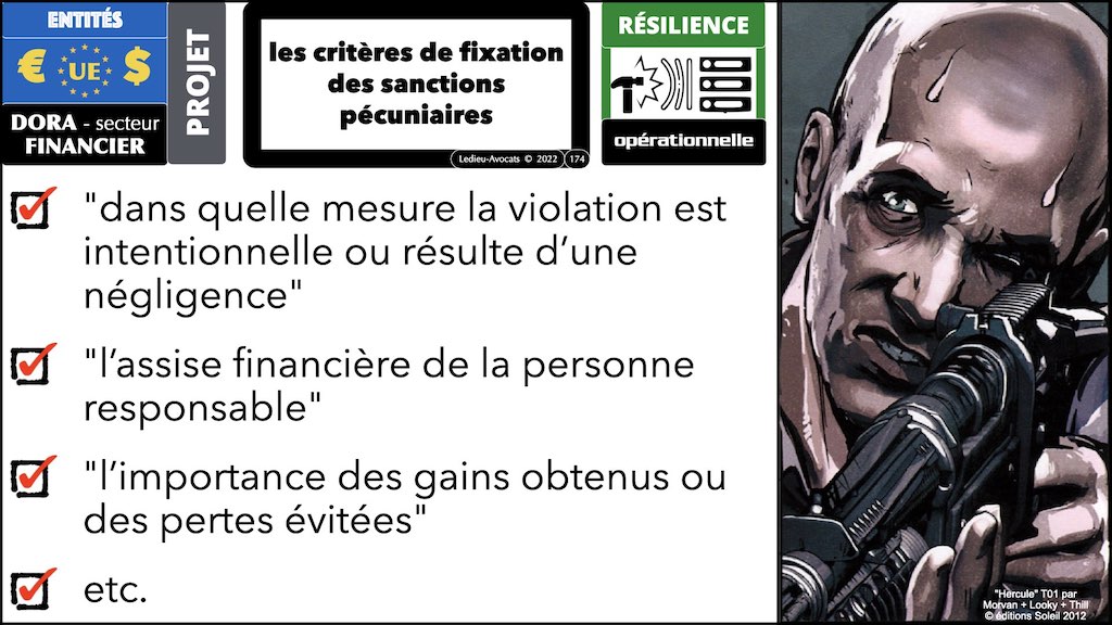En option, le Règlement DORA précise que les pays de l’UE pourront choisir d’adopter des sanctions pénales spécifiques DORA (ce que ne devrait pas manquer de faire la France pour rester fidèle à sa tradition en la matière).