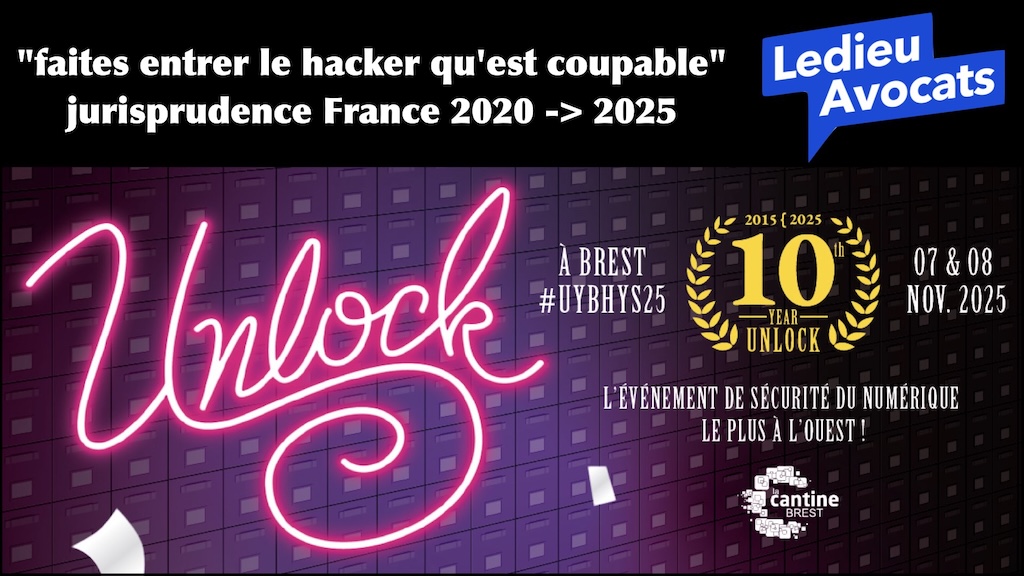 Faites entrer le hacker qu’est coupable : c’est le titre officiel de mon talk à la conférence de cyber-sécurité (la plus à l’ouest…) Unlock Your Brain Harden Your System le 8 novembre 2025.