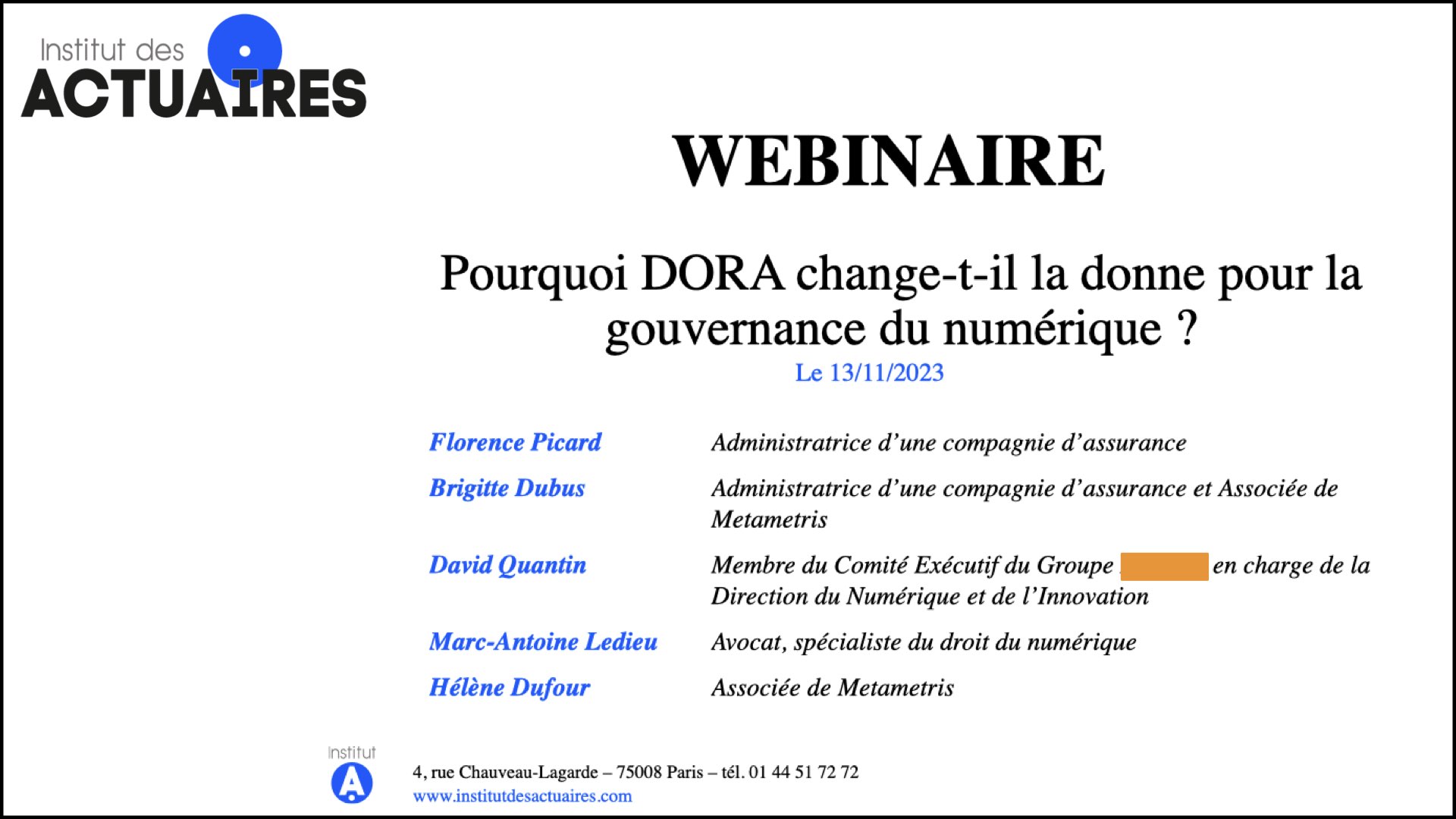 Pourquoi DORA change-t-il la donne pour la gouvernance du numérique ? [webinaire Institut des actuaires du 13 novembre 2023].