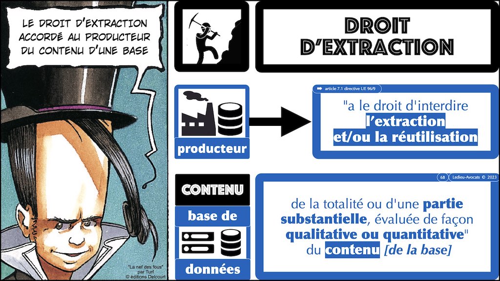 Pour le dire autrement, si vous accédez à la base de données des entreprises légalement constituées en France, vous pourrez copier l’intégralité des data concernant 1 entreprise (ou une modeste quantité de…), mais pas celles concernant toutes les entreprises.
