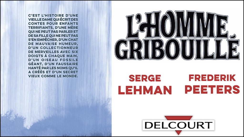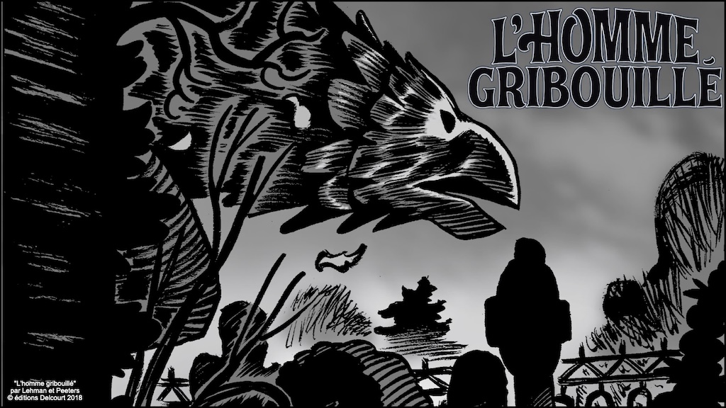 « homme gribouillé (L’) » one shot en noir et blanc de 326 pages (!) par Serge Lehman (scénario) et Frederik Peeters (dessin) © éditions Delcourt 2018 : un conte fantastique (dans tous les sens du terme)