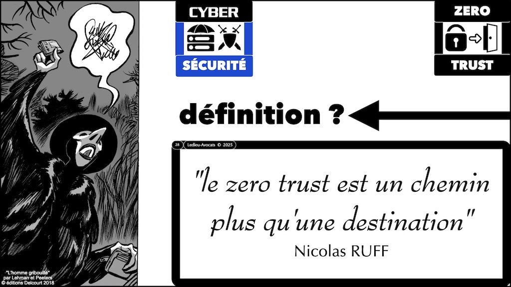 Le ZERO TRUST illustré avec "L'homme gribouillé" par Serge Lehman et Frederik Peeters aux éditions Delcourt 2018