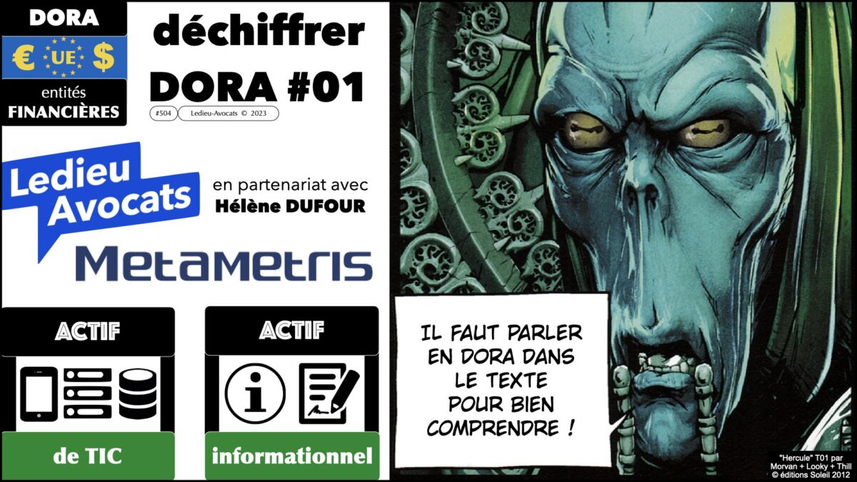 Les « actifs informationnels » [DORA article 6.8.d)] , quant à eux, désignent « l’ensemble d’informations, matérielles ou immatérielles, justifiant d’une protection« .