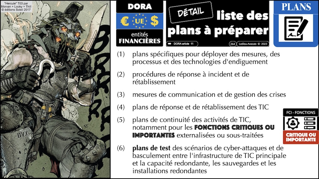 L’article 11.5 DORA envisage les « composantes critiques » : il fait peu de doute, pour un juriste comme pour un RSSI, qu’il s’agit ici de la redondance d’un « actifs de TIC supportant des fonctions critiques ou importantes«