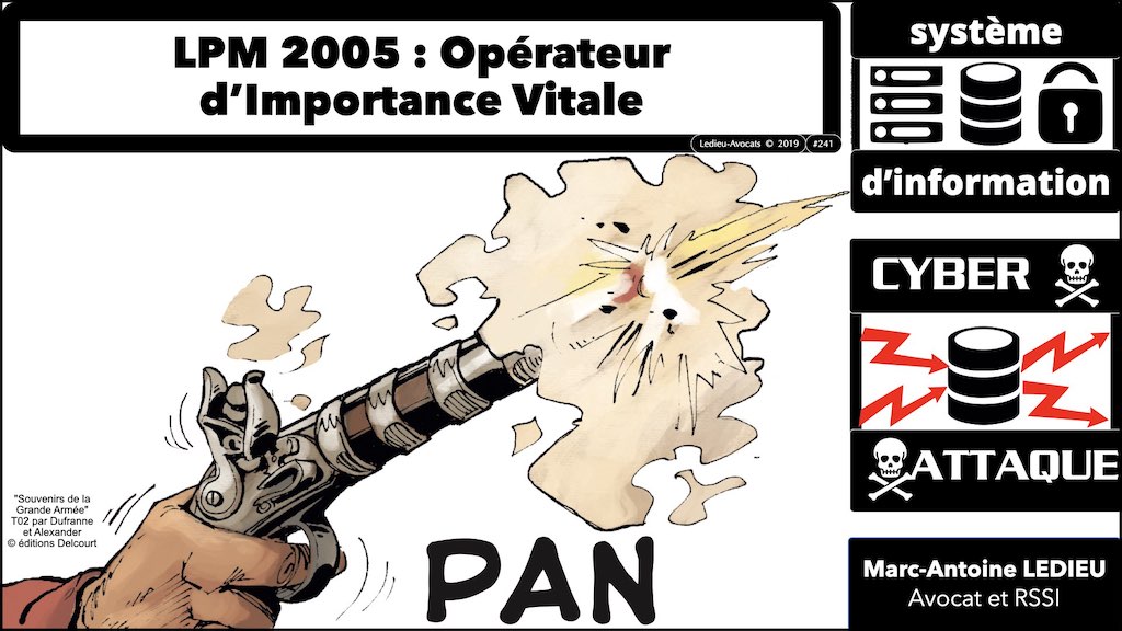 A venir, une nouvelle présentation (toujours avec les « Souvenirs de la Grande Armée » ) qui portera spécifiquement sur les systèmes d’informations d’importance vitale… L’acte III portera sur la réponse aux cyber-attaques dans les LPM de 2013 et 2018.