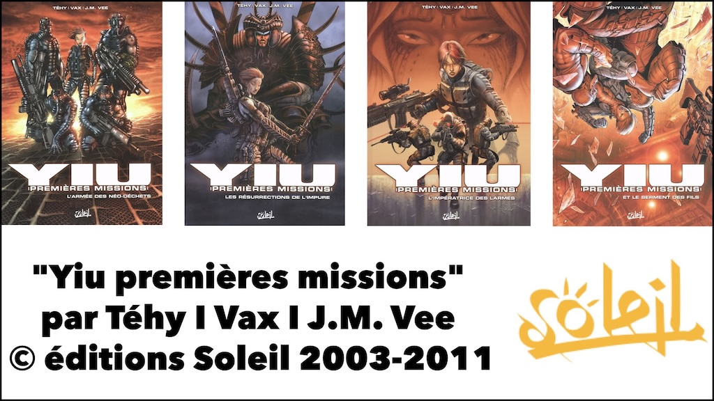 « Yiu Premières missions » série complète en 7 tomes qui déchirent par Thierry « Téhy » + Jeanne « JM Vee » + Vincent « Vax » © éditions Soleil 2003-2010 (science fiction et action dans un univers post-apocalyptique)