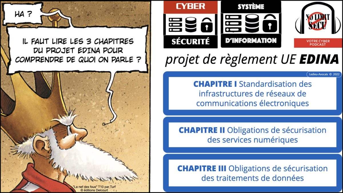 Devant l’avalanche de projets de textes législatifs de l’Union Européenne en matière de cyber sécurité (oui, oui, je rectifie : de sécurité des systèmes d’information…), l’équipe du podcast NoLimitSecu m’a demandé de lire et d’analyser l’avant-projet de la prochaine législation de l’UE : le Règlement « EDINA ».