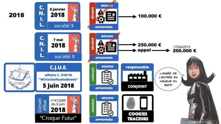 Pour rendre l’approche plus vivante, j’ai choisi de traiter le RGPD par la jurisprudence, qu’elle soit de la CNIL, du Conseil d’Etat ou de la CJUE (Cour de Justice de l’Union Européenne). Et de la jurisprudence, on en a plein depuis 2011…