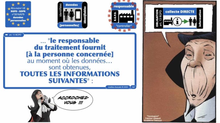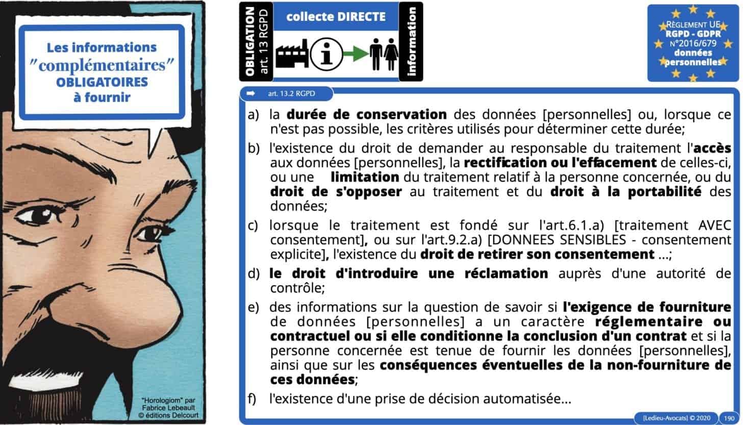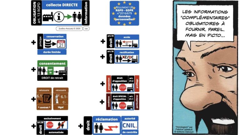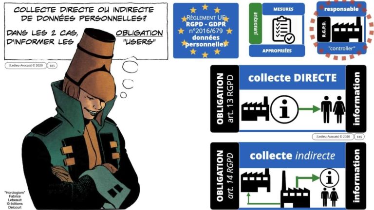 Le détail sur lequel porte cette obligation d’information, en cas de collecte « directe » ou « indirecte » est précisé dans les articles 13 et 14 du RGPD.