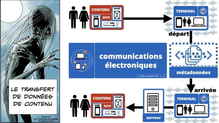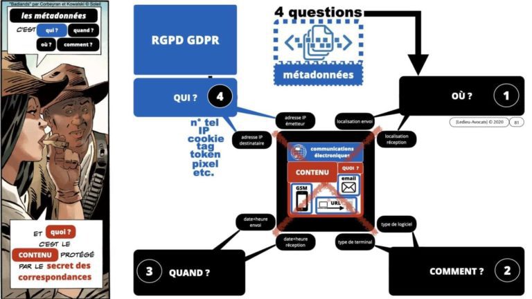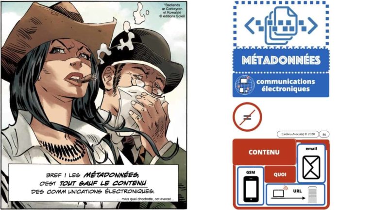 Les « métadonnées » ? Ce sont les données techniques permettant l’échange électronique de données de contenu. Ces métadonnées ne sont pas protégées ni par le secret des correspondances, ni par le droit d’auteur.