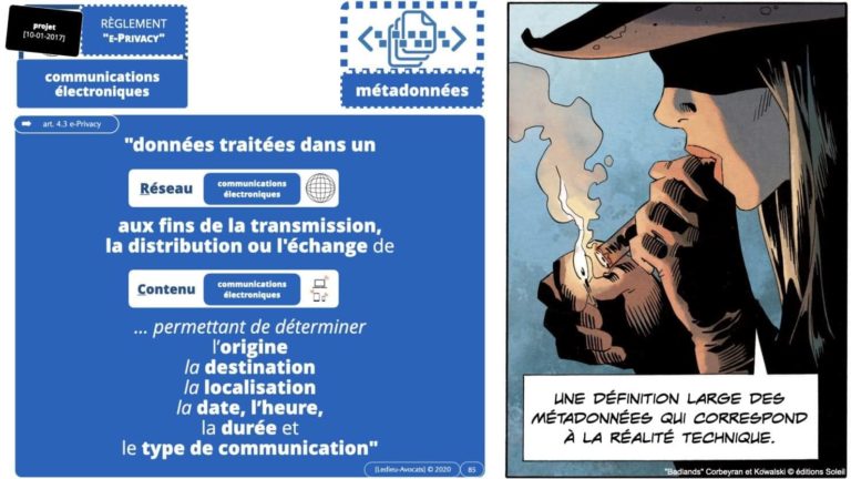 Aujourd’hui, la définition légale des métadonnées n’existe pas. Le texte actuellement en vigueur (la Directive 2002/58 « e-Privacy ») évoque seulement les « données relatives au trafic » et les « données de localisation« . Le projet de Règlement « e-Privacy » devrait mettre de l’ordre dans ces définitions et poser des règles (que l’on espère claires) relatives à l’utilisation des données de contenu d’une part, et des métadonnées d’autre part.