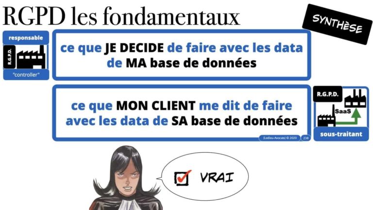 Retenons juste en 1 slide la répartition des rôles entre « controller » et « processor » :