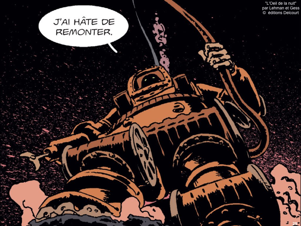 Un très très grand merci à Serge Lehman et Stéphane Gess, respectivement scénariste et dessinateur de « L’oeil de la nuit« . Je me suis « lâché » sur les images, mais certaines, avec les phylactères originaux, collaient si bien au sujet… J’espère juste que ça vous donnera envie de lire les 3 albums originaux qui sont vraiment exceptionnels. Encore merci à l’équipe des éditions Delcourt, Sébastien Le Foll et Lucie Massena, pour leur confiance renouvelée. Enfin une maison d’édition qui ne craint pas l’utilisation de son catalogue, tous les éditeurs ne sont pas si ouverts (pas de nom, pas de nom !).